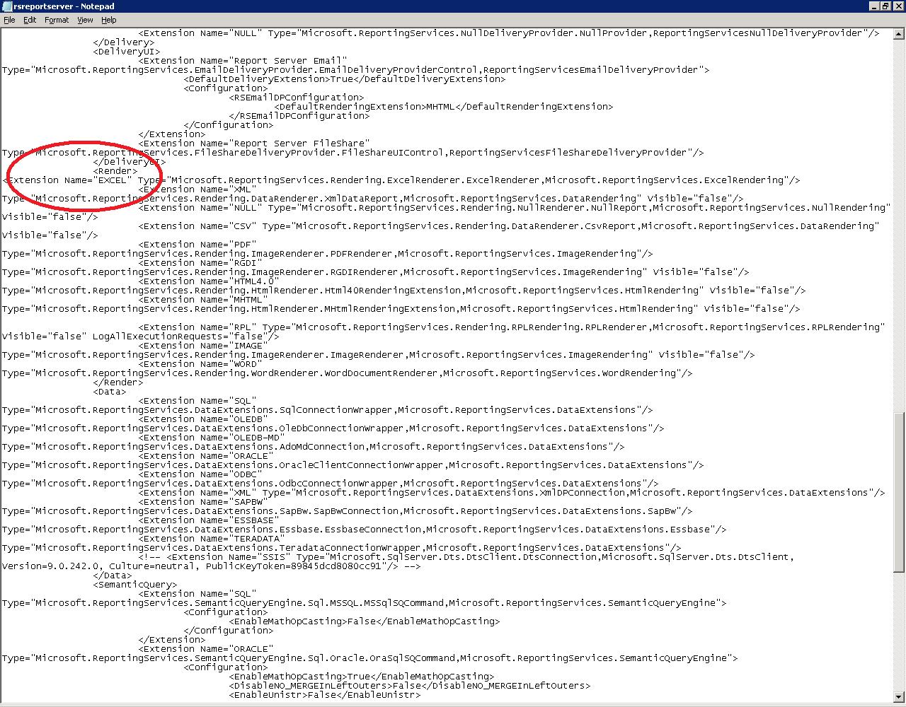 One quick note: You can go to the rsreportserver.config file in “\Program Files\Microsoft SQL Server\MSRS10.DEV\Reporting Services\ReportServer” directory and move the Excel option to the top. Check the screenshot below: