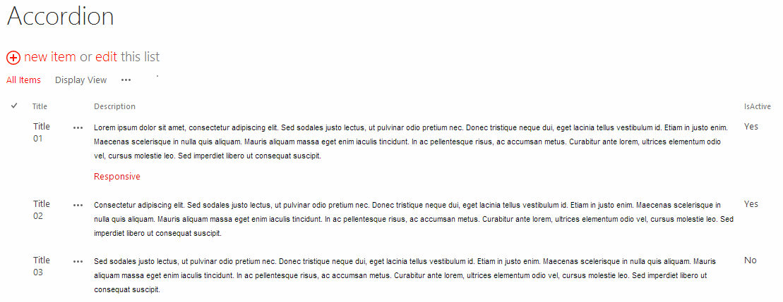 Loaded the Menu list next –> Boom! The accordion lost its Js Link functionality and started behaving like the menu displaying items using the template defined for the Menu list.