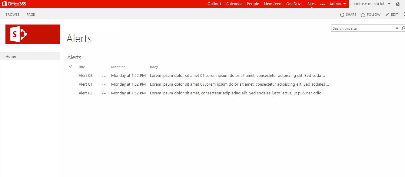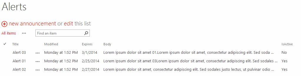 3. Alert: A list containing entries whose Body contents are lengthy and hence have to be trimmed down and ellipsis (…) added to the lengthy ones